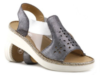 Skórzane półbuty damskie na koturnie - HELIOS Komfort 373, srebrne