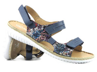 Skórzane sandały damskie z ozdobnymi paskami - HELIOS Komfort 249S, granatowe
