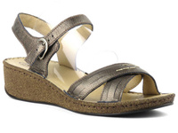 Skórzane sandały damskie na niewysokim koturnie - HELIOS Komfort 228, miedziane
