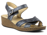 Skórzane sandały damskie na lekkiej podeszwie - HELIOS Komfort 229-1, granatowe