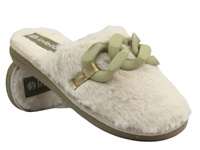 Futerkowe kapcie damskie z łańcuchem - INBLU EK-09, beżowe