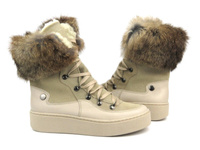 Botki damskie skórzane z futerkiem - Pollonus 5-0464-016, beżowe