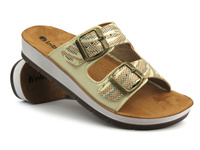 Skórzane klapki damskie na koturnie - Waldi 0887, złote