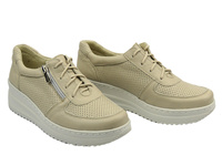 Półbuty Damskie Ze Skóry Naturalnej Helios 407 Jasny Beż Sznurowane
