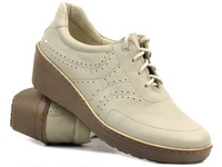 Skórzane półbuty damskie na niskim koturnie - HELIOS Komfort 402, ecru