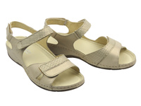 Skórzane sandały damskie na rzep - HELIOS Komfort 117, jasnobrązowe