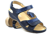 Skórzane sandały damskie z ozdobnymi paskami - HELIOS Komfort 249S, granatowe