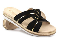 Klapki damskie ze złotą ozdobą - Potocki 23-21043, czarne