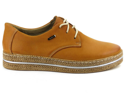 Skórzane półbuty damskie z błyszczącą cholewką - HELIOS Komfort 394, jasnobrązowe