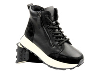 Skórzane trzewiki, trapery damskie czarne lakierowane Nika Komfort H-218