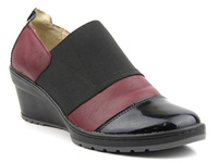 Skórzane półbuty damskie na koturnie Helios Komfort 707, wiśniowe