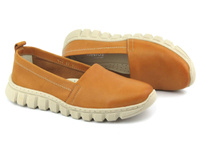 Skórzane półbuty, mokasyny damskie na wiosnę i lato - HELIOS Komfort 405, jasnobrązowe
