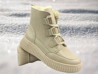 Skórzane botki damskie Polskiej marki - AXEL 4495, beżowe