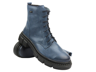 Wygodne półbuty damskie skórzane granatowe Helios Komfort 438