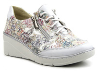 Wygodne półbuty damskie z cholewką w kwiaty - Helios Komfort 334, szare