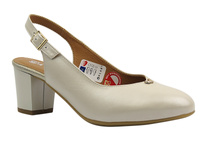 Skórzane czółenka na obcasie beżowe GALANT 3203