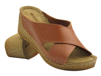 Skórzane klapki damskie beżowe Nika Komfort H-481
