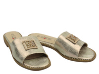 Skórzane klapki damskie złote Nika Komfort H-483/2