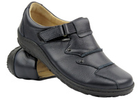 Skórzane półbuty damskie zapinane na rzep - Helios Komfort 780-2S, czarne
