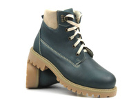 Skórzane trapery, śniegowce damskie ocieplone wełną - HELIOS Komfort 616-2, granatowe