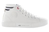 Ocieplane trampki damskie z elastycznym materiałem przy kostce - CROSS JEANS II2R4022, białe