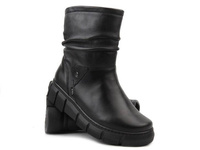 Sportowe, skórzane botki damskie na koturnie - HELIOS Komfort 594, czarne 2 - na zamek