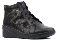 Skórzane botki, sneakersy damskie polskiej marki HELIOS Komfort 597, czarne z brokatem