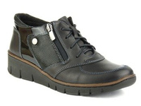 Skórzane botki damskie na podwyższanej podeszwie - HELIOS Komfort 540, czarne