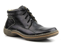 Skórzane trzewiki damskie z wełną - HELIOS 646, czarne