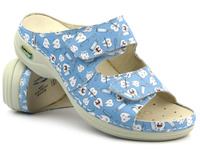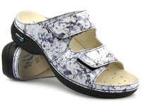Skórzane klapki damskie, medyczne - Nursing Care WG4AF1, białe w kwiaty