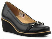 Skórzane czółenka na koturnie - AGXBUT 493, czarne