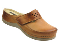 Skórzane klapki damskie lekarskie, sanitarne, medyczne beżowe - HELIOS Komfort 281