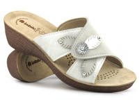 Skórzane klapki damskie na koturnie - Waldi 0887, złote