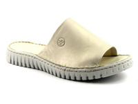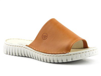Skórzane klapki damskie na białej podeszwie - HELIOS Komfort 255, jasnobrązowe