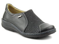 Skórzane półbuty damskie z gumką - HELIOS Komfort 324, granatowe