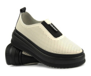 Półbuty, loafersy damskie na grubej podeszwie - Potocki 23-21048, beżowe