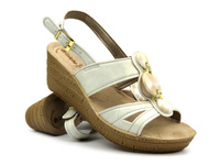 Skórzane sandały damskie na koturnie - HELIOS Komfort 118, ecru