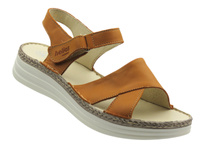 Skórzane sandały damskie na rzep beżowe Helios Komfort 127