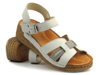 Skórzane sandały damskie na koturnie - Wasak 0719, biale