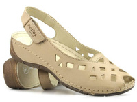 Skórzane sandały damskie - Wasak 0719, beżowe