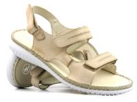 Skórzane sandały damskie na rzep beżowe Helios Komfort 127