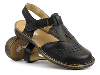 Skórzane sandały damskie na ozdobnym koturnie - HELIOS Komfort 250, czarne