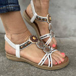 Sandały damskie na płaskie podeszwie w stylu boho- Artiker 54C1332, białe