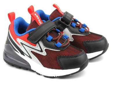 Sportowe buty dziecięce na grubej podeszwie - AMERICAN CLUB BD 17/21, czarno-czerwone