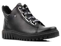 Skórzane botki damskie w sportowym stylu - Helios Komfort 531, czarne