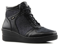 Skórzane botki, sneakersy damskie polskiej marki HELIOS Komfort 597, czarne z brokatem