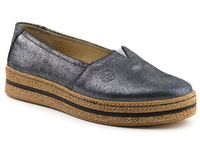 Wygodne półbuty damskie skórzane - HELIOS Komfort 409, srebrne
