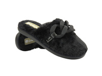 Futerkowe kapcie damskie z łańcuchem - INBLU EK-09, czarne