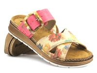 Klapki damskie z regulowanym paskiem- Inblu GS-51, beżowe w kwiaty