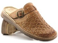 Klapki męskie z ażurową, plecioną i regulowaną cholewką - HELIOS Komfort 807, brązowe